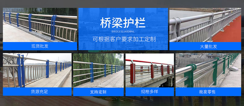 種類(lèi)齊全 Complete range橋梁護(hù)欄,防撞護(hù)欄,燈光護(hù)欄,景觀(guān)河道護(hù)欄,鋁合金護(hù)欄,鋼絲繩護(hù)欄,不銹鋼復(fù)合管護(hù)欄