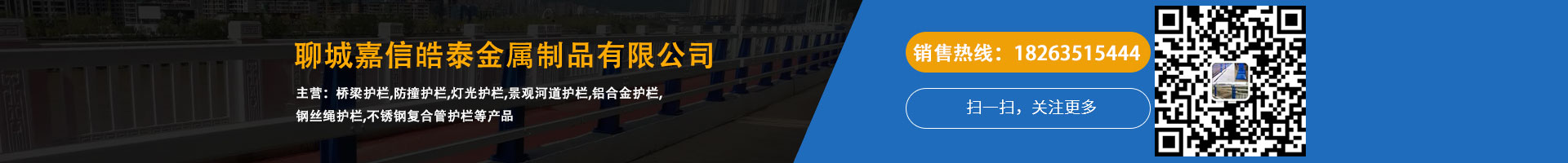 聊城嘉信皓泰金屬制品有限公司是一家專(zhuān)門(mén)銷(xiāo)售、橋梁護(hù)欄、防撞護(hù)欄,不銹鋼復(fù)合管護(hù)欄,河道護(hù)欄,景觀(guān)護(hù)欄,燈光護(hù)欄,護(hù)欄立柱等產(chǎn)品的公司,材料多樣,可滿(mǎn)足客戶(hù)不同的需求,提供安裝、調(diào)試、物流配送的完善服務(wù),竭誠(chéng)為用戶(hù)提供各種產(chǎn)品加工和技術(shù)服務(wù)。 產(chǎn)品廣泛用于市政公用工程施工,鋼結(jié)構(gòu)、網(wǎng)架工程施工,石油石化、市政設(shè)施、路橋護(hù)欄、公路交通工程施工;建筑裝飾工程施工;體育場(chǎng)地設(shè)施工程施工交通格柵、鐵路隔離網(wǎng)、建筑裝飾、路燈、站牌、鋼結(jié)構(gòu)網(wǎng)架、家具、車(chē)船制造、城市管網(wǎng)、輸油輸氣、摩托車(chē)保險(xiǎn)杠、晾衣架、自行車(chē)車(chē)把等。公司以科學(xué)的管理、精確的檢測(cè)、周到的服務(wù)滿(mǎn)足廣大客戶(hù)的需求,在本行業(yè)中一直擁有良好的聲譽(yù),并贏(yíng)得了客戶(hù)的廣泛好評(píng)。